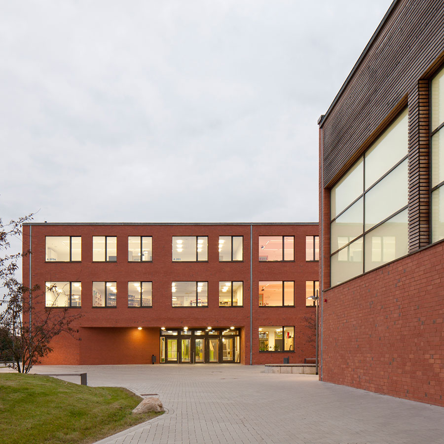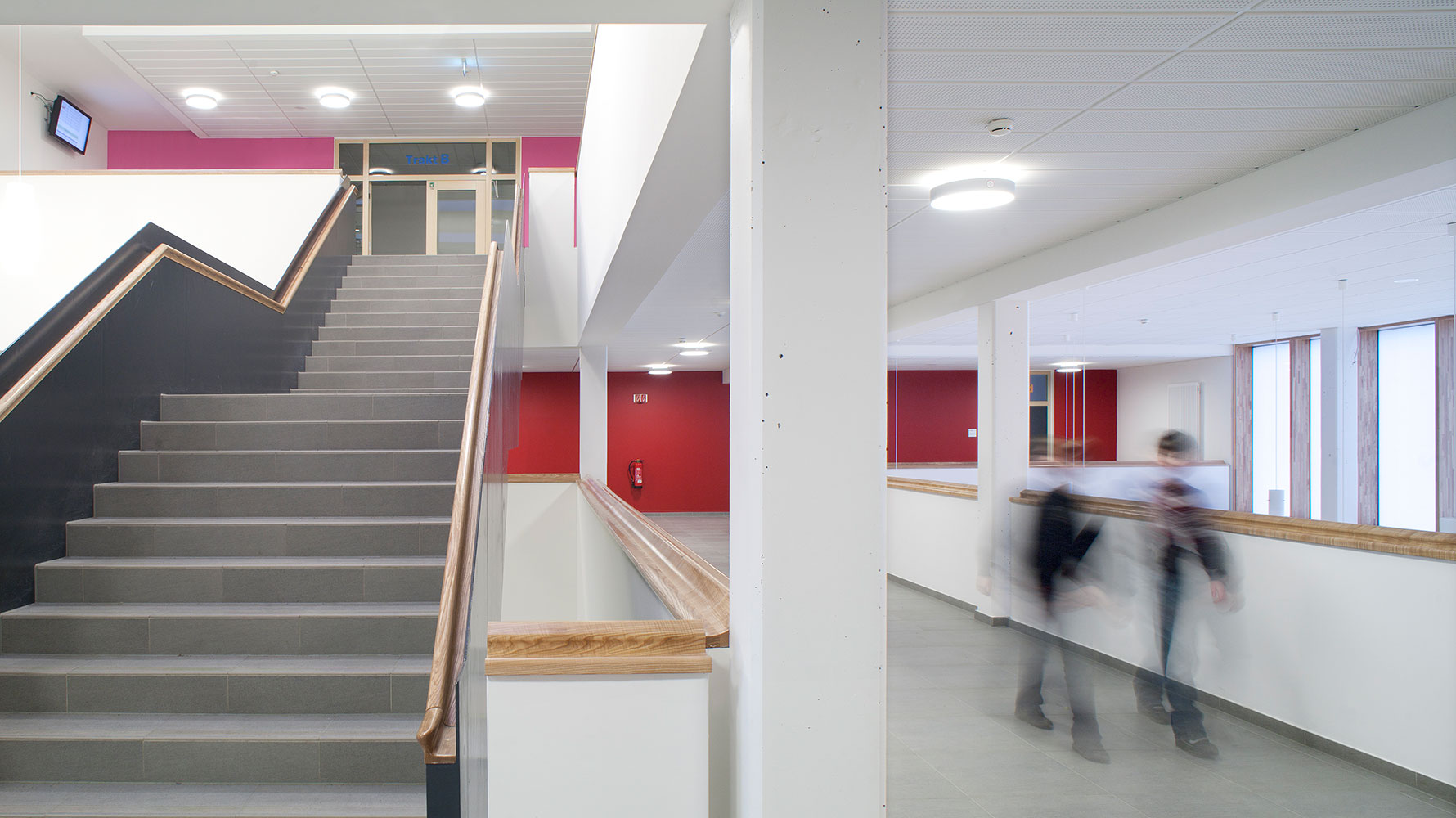 Im Rahmen eines VOF-Verfahrens wurde das kompakte Schulhaus für knapp 600 Schüler in Passivhausbauweise geplant und realisiert.
