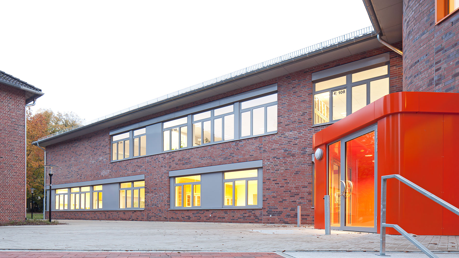 Der Baukörper vereint den neuen Außenbereich der Schule, welcher sich auf zwei Ebenen erstreckt.