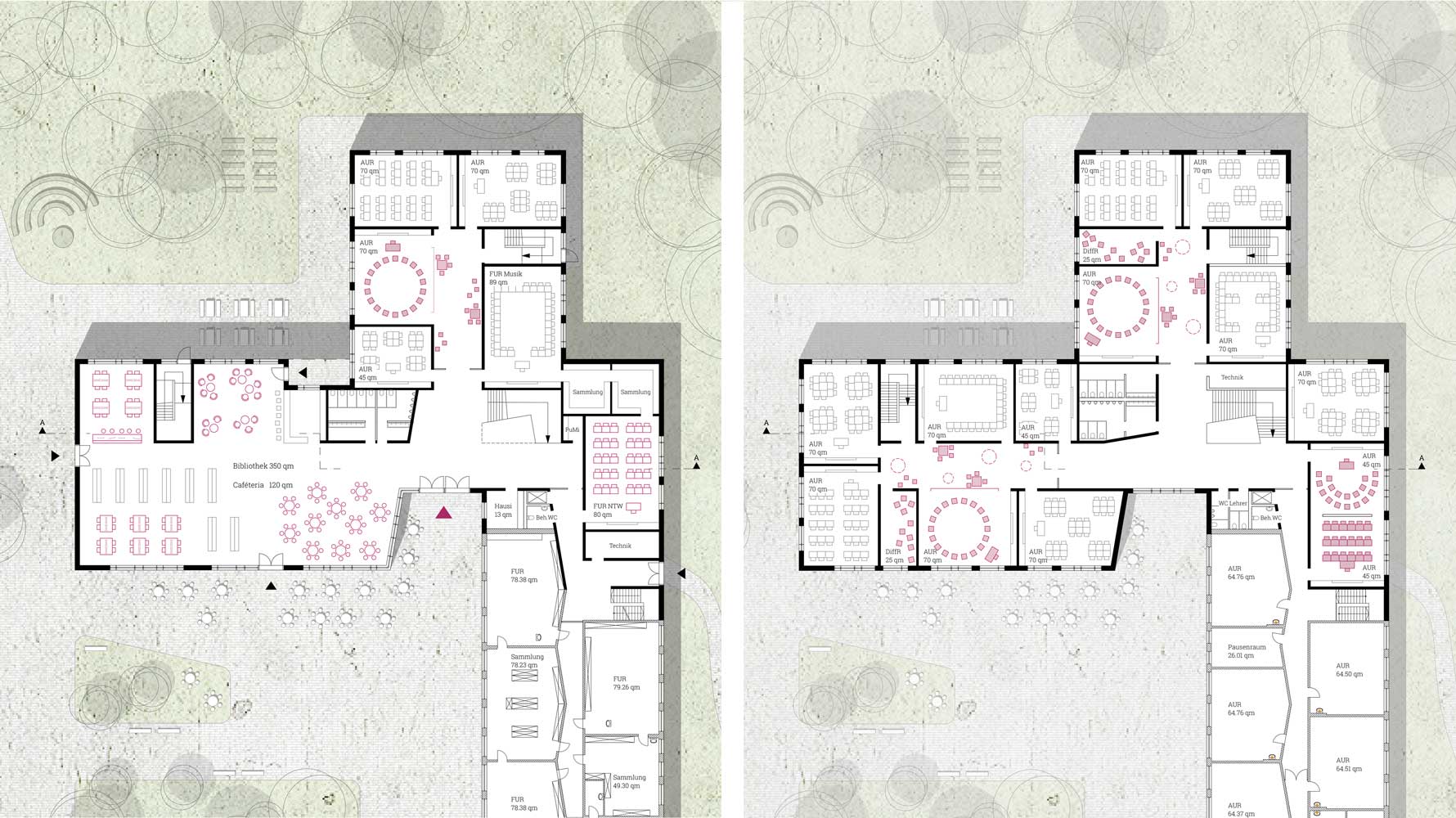 Strukturelle Raumanordnungen und -proportionen schaffen eine Arbeitsvielfalt für Ruhe und Rückzug im Kleinen als auch für Austausch im Großen. Eine ‚lernende Architektur‘ sollte sich den jeweiligen Gegebenheiten flexibel anpassen können ohne dabei den Schulalltag in seiner Funktion aufzulösen.